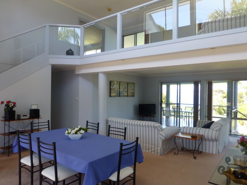 Two spacious living areas opening onto large covered decks with great ocean views and an enclosed sunny courtyard, makes this a superior holiday property.
