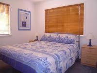 Upstairs consists of two bedrooms both with queen size beds, bathroom with bath, kitchen with microwave and dishwasher, open plan with polished floors, TV, DVD/ VCR and stereo opening onto a covered deck with BBQ and outdoor setting.