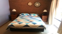 Executive double storey, three bedroom townhouse . Minutes walk to town, All tastefully decorated. Upstairs - Main Bedroom, Queen size bed, Ensuite. Balcony off main bedroom. Downstairs - Two bedrooms downstairs, with bathroom, Queen size bed, 2 single beds Dishwasher, Microwave, New flat screen TV and DVD. New Air Conditioner. BBQ on front balcony overlooking the entrance Directly across the road from Merimbula Lake No linen supplied. No Pets allowed.