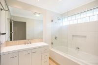 • Refurbished bathroom featuring glass bricks