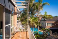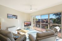 Just footsteps away from Mitchie’s Jetty and within strolling distance of beautiful Main Beach, this fully furnished two bedroom holiday apartment enjoys a prized location on Merimbula’s Fishpen. Located in an immaculately maintained complex with living area and balcony overlooking the solar heated in-ground pool and bbq area. There’s the added convenience of a double lock-up garage with internal access providing safe storage for the car, boat or golf clubs.