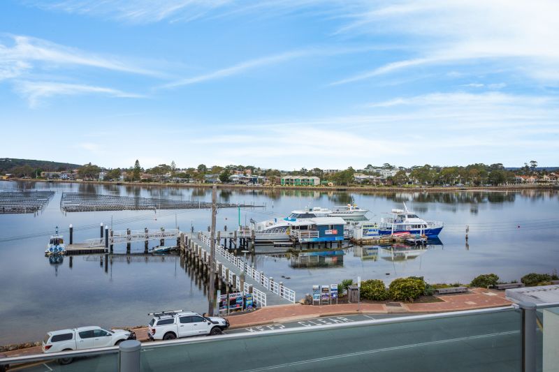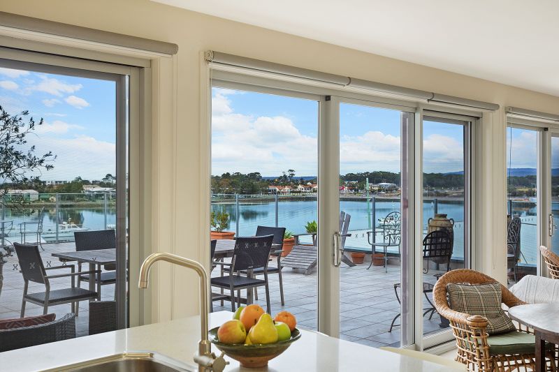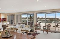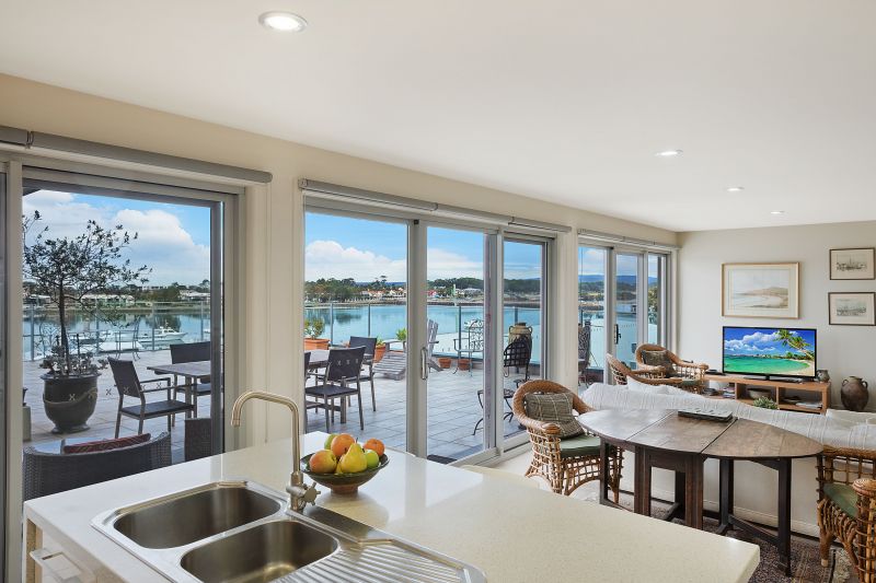 Boasting panoramic views of Merimbula’s Fishpen and beyond is this superb apartment that offers a lifestyle second to none!!! no closer proximity to town and sunlit northerly aspect, the master bedroom enjoys a large walk in robe and luxury ensuite that flows out onto a private balcony. The kitchen embraces stunning water views and offers stainless steel appliances, caesar stone bench tops, spacious lounge with reverse cycle air conditioner, separate dining area and the most enormous entertaining deck.