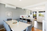 The home is split over two levels with downstairs enjoying a large living opening onto the beautifully landscaped gently sloping grassed back yard and a huge bedroom that can easily accommodate a double and queen bed. Also downstairs is a full bathroom and laundry.