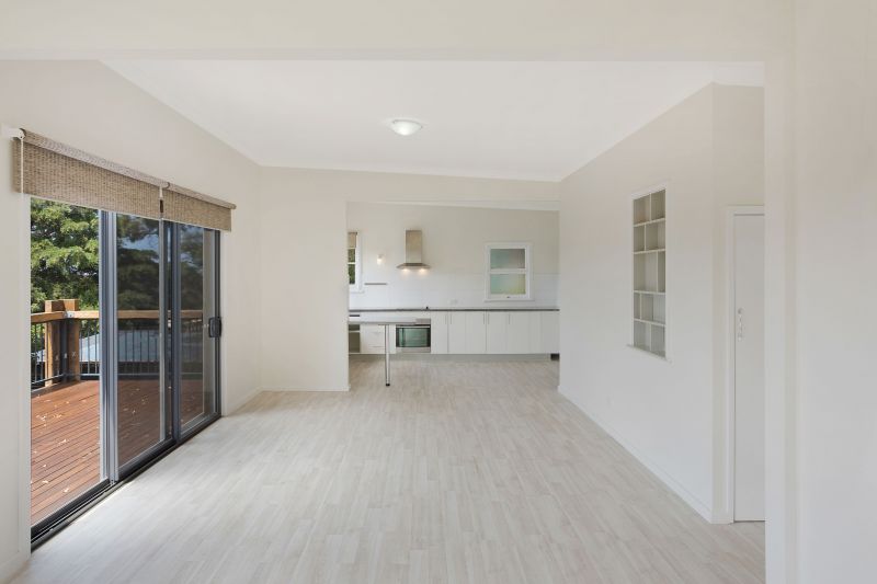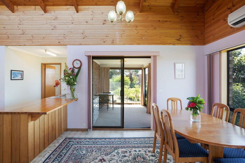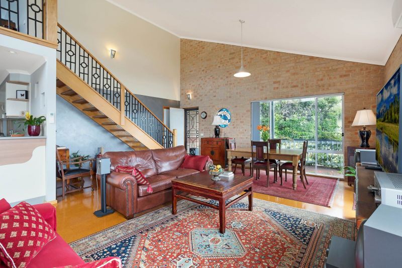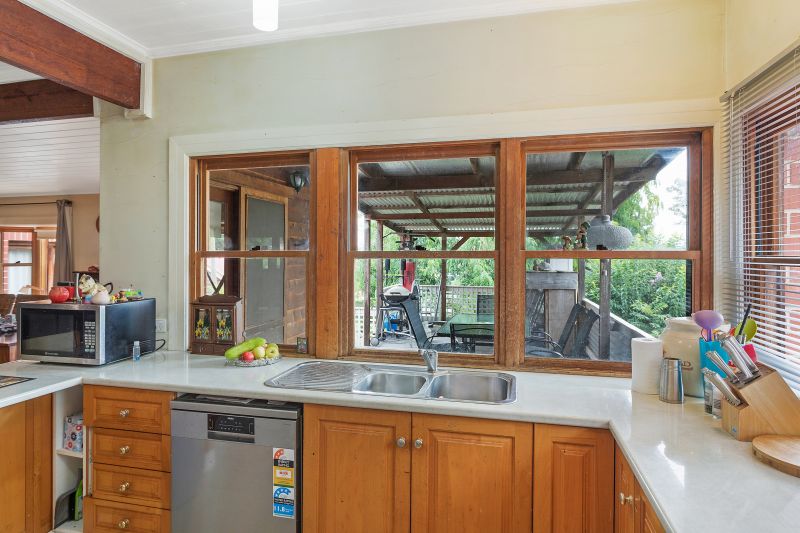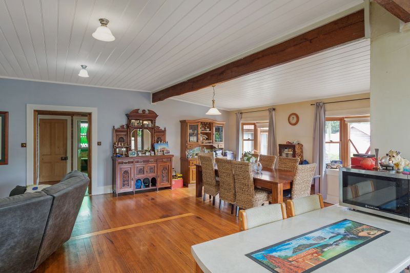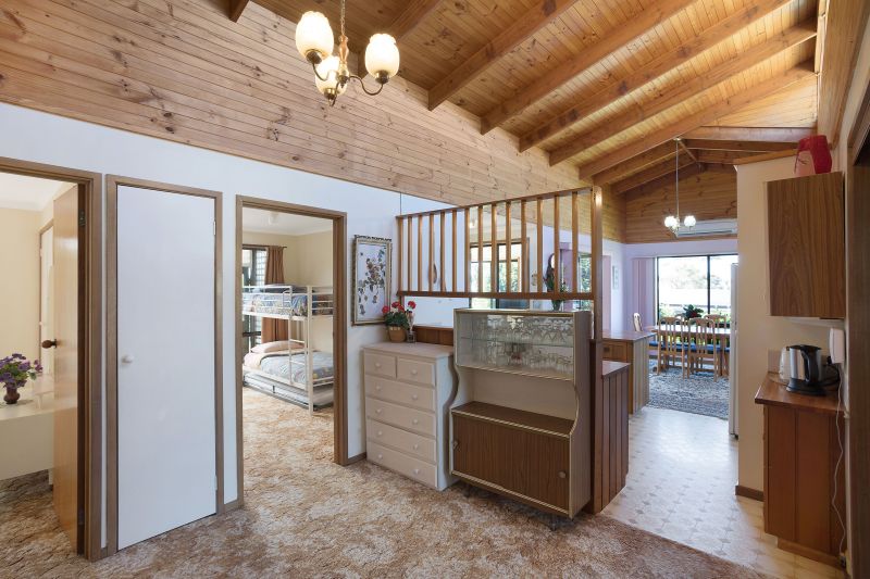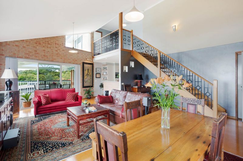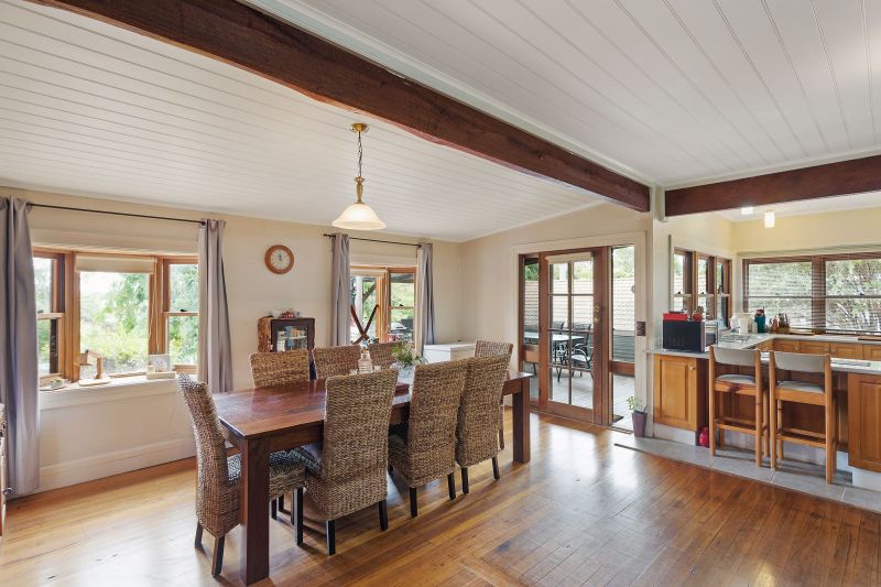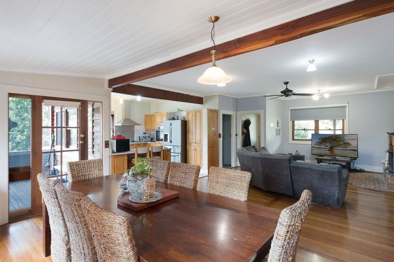 Enjoying a corner position behind established gardens, the property enjoys a sense of privacy that is hard to find in town, and the huge timber deck that wraps around the house makes the most of this private and sunny position. The interiors of the home… More »
